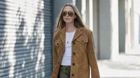 Në imazhe, Beyoncé shfaqet elegante me një pallto lëkure, çantë të njëjtë dhe syze, ndërsa në një tjetër foto mban një bluzë ngjyrë kremi me supet jashtë të kombinuar me pantallona jeshile me rrip. Në sfond dallohej Levi's Stadium, ku u zhvillua ndeshja mes Seattle Seahawks dhe New England Patriots.