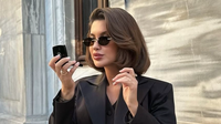 Pamjen e plotësoi me syzet e saj të mëdha karakteristike, vathët rrethorë dhe çantën e madhe Dior në ngjyrë të zezë.